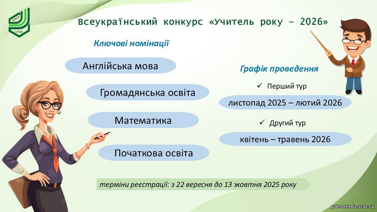 Всеукраїнський конкурс «Учитель року-2024 » відбудеться за номінаціями: